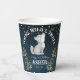 Little wolf themed birthday party monogrammed paper cups, cute wolf pup dark starry night background, young wild and three wolf party personalized table decor printed paper cups