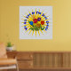 Multi-coloured tulips with a soft yellow sun in the background highlight the words "We all live in the same garden." Spread the seeds of peace with this message of harmony and one world