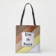 Totally thrilled with this bag. The material is thick and durable (this is my third purchase of this tote bag). The printing turned out amazing. The bright red was just as bright as it is on the computer. So impressed with this bag.