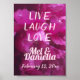 Live Laugh Love! These are your wedding posters to welcome your guests. Use as many as you need to mark directions to the wedding site or rooms. Florals in stunning purple peonies, with pale pink lettering for the words. It's easy to customize the names, date, and the special message. Floral photography shows details of flower petals. Make each moment of your wedding day as gorgeous as you!