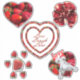 Set of 5 stickers with text Live, Laugh, Love, strawberries and pomegranate fruit The inscription and hearts are made of scarlet strawberries.