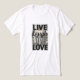This t-shirt design features the classic mantra "Live / Laugh / Love" stacked vertically, creating a visually interesting textured grid-like effect. The simple yet powerful message, combined with the unique layout, makes this design both stylish and inspirational.