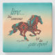 This is a Unique "One of a Kind" Inspirational Southwest Horse Stone Coaster! It Features a Galloping Southwest Horse in Turquoise, Orange and Black on Turquoise and Orange Sunset Background and the Inspirational Quote....Live Like Someone Left the Gate Open!