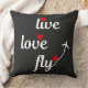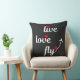 Live Love Fly Typography with Airplane & Hearts Throw Pillow