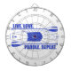 The personalized dart board will be perfect for my daughter's game room in their new house! It was packaged well and arrived with no damage. It is rather sturdy. Because of the weight, I am going to recommend they use an anchor bolt to secure it or nail into a stud behind the drywall. The printing turned out exactly like I saw it on the preview.