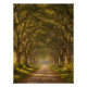 A peaceful dirt path winds beneath a canopy of towering live oak trees in this warm southern landscape artwork. Golden sunlight filtering through the branches creates a calm and inviting atmosphere.
