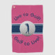 Live to Golf Quote Typography Pink & Blue Towel
