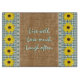 "Live well, Love much, laugh often" quote on burlap with green and white gingham border with yellow daisy like flowers for your rustic or country kitchen. Feel free to change the text to your favourite saying. Custom design