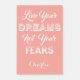 “Live Your Dreams, Not Your Fears”. You can change the background colour of this item to any colour you want by using the "Customize it" function. See my store for more items with this design.