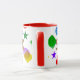 The cheerful personalized coffee mug boasts a vibrant and lively geometric design featuring stars, squares, and circles in bright colors such as golden yellow, red, green, blue, pink, and purple. This custom mug offers the option to personalize it with an initial or other text in a striking golden yellow. Whether you choose to keep the classic red mug or switch to green, blue, or black, it is sure to brighten your coffee or milk-drinking moments! A delightful choice for both kids and adults, this fun mug adds a touch of joy to any beverage.