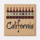 Located just east of San Francisco, the Livermore Valley is home to nearly 50 wineries and 5,000 acres of vineyards. The Livermore wine country includes Castro Valley, Danville, Pleasanton, San Ramon, and Sunol. Design features a lineup of red wine bottles with the message, Livermore, California. Livermore is one of the Golden State's oldest and most popular wine making regions. Whimsical design makes a great gift for wine lovers, wine tasters, wine festival participants, or anyone who loves the Livermore Valley Wine Country. Share your Livermore pride! This design is presented over a printed cork background, which can be removed and replaced with any light colour.