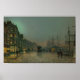 Gaslight glows on wet cobblestones as evening descends on the port city of Liverpool. Tall ships rest at dockside, and warehouse lights flicker across puddles and brick façades. The air is damp and moody, and the city feels both alive and lost in thought—an urban moment suspended in twilight.