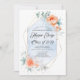 Living coral flowers and dusty blue watercolors modern geometric gold frame graduation party invitations