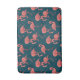 Vector pattern with hand drawn flamingos in living coral colour on dark blue background.