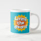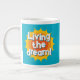 Living the dream! big coffee mug gift for retiree. Fun gift with inspirational quote. Vintage typography design with red hot sun logo. Unique cup for retired colleague, retiring coworker, corporate employee, boss, dad, father, lottery winner, business owner, friends, family, wife, husband, grandpa etc.