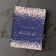 Arrière - plan bleu marine. or rose, confettis roux. Le titre : carnet de croquis écrit avec un script de style à la main moderne et girly avec des swashes. Lettres de couleur blanche. Un carnet pour les dessins, esquisses, notes et devoirs scolaires.