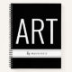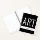 Ordinateur portable personnalisé en noir et blanc à utiliser comme dessin ou dessin avec un titre minime énorme "Art by Your Name" imprimé sur la couverture dans une police sans serif moderne.