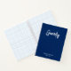 Un carnet de grille de papier graphique de classe marine et blanche pour sa classe de mathématiques de géométrie à l'université. Customisez la couleur marine bleue arrière - plan, ou blanc moderne style de script de brosse et la taille selon les besoins pour créer vos propres notes de classe carnet vide. Vous pouvez facilement adapter cette conception de texte personnalisée pour un autre cours collégial. Il y a plusieurs polices de calligraphie de script audacieuses et modernes disponibles dans le système si vous voulez un autre style.