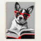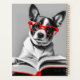 Photo en noir et blanc d'un chien Lire une lecture avec un éclat de couleur cadre en verre rouge une couverture de livre