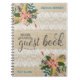 Le thème à la mode de toile de jute et de mariage de dentelle sur un livre d'invité nuptiale souple et à spirale de douche. Personnalisé pour la jeune mariée avec son nom et la date de douche dans n'importe quelles couleurs vous choisissez.