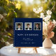 Un élégant arrière - plan bleu marine. Pour lui et elle. Ajouter 3 photos, âge, nom, Le nom est écrit avec un script de style manuscrit moderne.