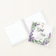 Un élégant arrière - plan blanc décoré de fleurs de lavande, de verdure d'eucalyptus et d'une croix dorée. Personnalisez et ajoutez un nom et une date.