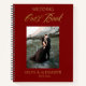 Livre d'or moderne Mariage rouge foncé : Un design moderne épuré avec élégante calligraphie or brossé dressée contre un arrière - plan rouge foncé. Customisez le devant avec votre photo préférée et vos coordonnées personnelles. Le souvenir parfait pour une célébration mariage ou d'anniversaire.