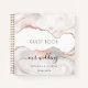Pour un mariage moderne et élégant. Un rose élégant faux marbre doré, arrière - plan agate. Ajoutez vos noms et la date du mariage. Avec le texte : Livre d'or et notre mariage. Notre mariage est écrit avec un script de style à la main tendance avec des swashes.