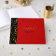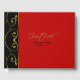 Livre d'hôtes mariage rouge frappant avec zone de colonne noire, avec des motifs tourbillonnants de couleur or. Le texte graphique en tons or indique Guest Book. Personnalisez le texte de la coutume noire, pour votre jour de mariage.