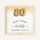 Un livre d'or pour une soirée féminine et glamour de 80e anniversaire. Un élégant arrière - plan blanc avec une parties scintillant en faux or foncé, brille. Ajoutez votre nom, âge/texte. Le numéro 80 est écrit avec une police de style ballon.