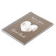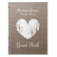 Livre d'invité de mariage de toile de jute avec la conception rustique de coeur. Guestbook chic de pays mignon pour que les invités signent. Typographie élégante de manuscrit avec le symbole patiné d'amour.