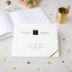 Réservez un élégant livre d'hôtes de mariage monogramme moderne conçu dans un style épuré, moderne et minimaliste. L'emblème élégant et élégant de style monogramme serif au centre est orné d'une élégante fausse bande dorée qui crée un design élégant, moderne et sophistiqué de monogramme mariage livre d'or. Ce design de livres d'hôtes mariage convient bien à un thème de mariage minimaliste et élégant. La carte postale du livre d'or est entièrement personnalisable avec vos propres informations. Vous pouvez customiser la taille du texte, la couleur du texte, la police et la mise en page de votre propre préférence de design mariage personnel. Nous avons une gamme de produits assortis pour ce thème minimaliste noir, blanc et mariage épuré.