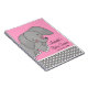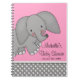 Un carnet personnalisé de baby shower d'éléphant. Comporter une illustration lunatique d'éléphant sur l'arrière - plan rose avec le pois gris. Perfectionnez pour une partie de baby shower rose. Travaille grand comme livre d'invité, carnet de conseils et plus ! © www.scrappindoodles.com de graphiques