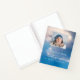 Un livre d'hôtes pour un service commémoratif ou funéraire. Un ciel bleu comme arrière - plan. Personnalisez et ajoutez une photo, un nom et des dates. Lettres blanches. Texte : Pour toujours dans nos coeurs.