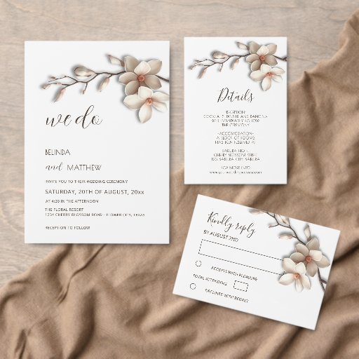 Off White Blush 3D Magnolia WeddingConçu par Nina Baydur