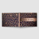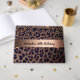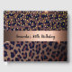 Elégant, glamour et féminin pour une fête de 80ème anniversaire avec empreinte de léopard marron, doré et noir décoré de confettis dorés. Modèle pour un nom et âge 80. Un faux brassard métallique en bronze. Script de style en lettres de couleur noire, lettres. Épine : ajoutez votre propre texte.