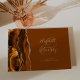 Cet élégant livre d'invités de mariage présente une aquarelle design dans les tons de rouille et d'orange brûlée, bordée de parties scintillant en faux or. Customisez facilement le texte de couleur or sur un arrière - plan brun de muscade, avec les noms de la mariée et du marié dans la calligraphie d'écriture manuscrite fantaisiste sur une grande esperluette. Ajoutez le texte de votre choix à l'avant et à la colonne vertébrale.