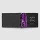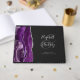 Cet élégant livre d'invités de mariage présente une aquarelle violette design ornée de parties scintillant en faux argent. Customisez facilement le texte gris argenté sur un arrière - plan noir foncé, avec les noms de la mariée et du marié dans la calligraphie d'écriture manuscrite fantaisiste sur une grande esperluette. Ajoutez le texte de votre choix à l'avant et à la colonne vertébrale.