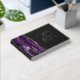 Cet élégant livre d'invités de mariage présente une aquarelle violette design orné d'une parties scintillant en faux or. Customisez facilement le vrai texte de feuille d'or sur un arrière - plan non-noir, avec les noms du couple dans la calligraphie d'écriture géante sur une grande carte grise. Ajoutez le texte de votre choix à l'avant et à la colonne vertébrale.