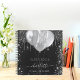 Un arrière - plan noir élégant avec des gouttes et de la poussière de parties scintillant faux argent. Décoré de ballons violets. Personnalisez et ajoutez un nom, un âge et une date. Le nom est écrit avec un script de style moderne écrit à la main avec des swashes. Pour que les swashes ne suppriment que le nom de l'échantillon, laissez les espaces ou émoticônes devant et après le nom. Peut être utilisé comme livre d'or pour la fête, pour la planification de la fête ou comme faveurs du parti.