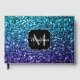 Livre d'or pour dames. Personnalisez avec votre initiale et votre nom. De belles parties scintillant brillantes en bleu foncé et bleu clair scintillent aqua purple ombre. Photo cyan et bleu foncé pétille pas parties scintillant réelle!
