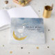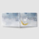 Petit éléphant le plus doux assis sur une lune d'or avec un lapin blanc attrapant une étoile sur un arrière - plan bleu de lavage à l'aquarelle. Disponible dans notre boutique en d'autres couleurs pour un baby shower pour filles ou baby shower pour garçons. Visitez notre boutique pour voir toute notre collection de baby showers d'éléphants étoiles.