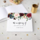 Cet automne rustique bordeaux moderne calligraphie mariage livre d'hôtes est parfait pour un mariage simple. Le design est composé de fleurs bordeaux, rouges, navales, bleues et rousses rayonnantes et gracieuses peintes à la main, inspirant la beauté naturelle. Customisez le couvercle avant et la colonne vertébrale pour y inclure les noms de la mariée et du marié et la date du mariage.