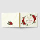 fleurs rouges romantiques et feuilles verts sur le marbre doré arrière - plan botanique livre d'or.