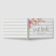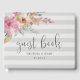 Invitation vos invités mariages à partager leurs souhaits et leur sagesse avec ce livre d'hôtes chic tonique gris pâle rayé agrémenté de fleurs d'aquarelle rose et pêche. Les caractéristiques de conception par bandes "livre d'invité" en écriture manuscrite de script de calligraphie, avec vos noms et date mariage en dessous. Un bouquet luxuriant de fleurs de pivoines rose vif et vert sauge qui fleurissent à l'angle complète l'apparence. Personnalisez la colonne vertébrale grise ainsi que votre choix de texte personnalisé.