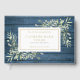 Une célébration de la vie personnalisée et rustique, livre d'hôtes funéraire avec verdure sur un arrière - plan de panneaux de bois bleu. Conçu par Thisisnotme©