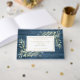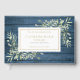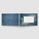 Une célébration de vie personnalisée rustique, livre d'or funéraire avec verdure sur fond de panneaux de bois bleu. Conçu par Thisisnotme©