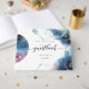 Livre d'or sur le thème céleste unique avec de magnifiques taches d'aquarelle et des étoiles de dainty créant un arrière - plan céleste cosmique. Constellations globe/map sur le côté ajoutant un élément astrologique unique. Détails de calligraphie manuscrite moderne. Conception dans un mélange de tons bleu, bleu marine, turquoise, turquoise, violet, fuchsia et or. Coordination du panneau du livre d'or disponible. Une partie de notre collection "Mystic Garden Celestial" avec une variété de produits de coordination disponibles.