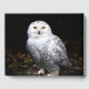 Portrait animal photo d'un majestueux hibou neigeux debout sur une branche.