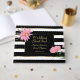 Mariage Livre d'invité - Chrysanthème rose sur les rayures modernes noir et blanc